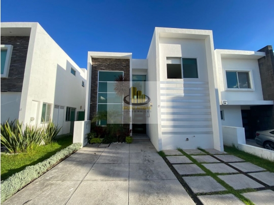 Casa en renta en cluster con alberca en lomas de Angelopolis II frente a sonata Sala a doble altura , cocina integral con barra, área de lavandería y cuarto de servicio con baño.Jardín amplio 3 recámaras la principal con baño y vestidor Las secundarias comparten baño Amenidades : alberca, gym, salón de eventos, juegos infantiles